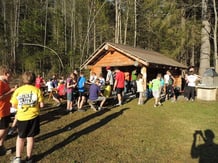 Am Morgen war (wie gestern) Sport in den verschiedenen Gruppen angesagt. Nach einer verlängerten Mittagspause (es machten sich schon langsam Ermüdungserscheinungen bemerkbar) erwartete uns die nächste Überraschung: Ein Trekking-Event mit Game-Stationen und einem Barbecue mit coolem Food (oder für die Älteren: ein Postenlauf mit anschliessendem Bräteln). Vom KUSPO aus waren auf dem Weg zu den Simmenfällen von den 10 Gruppen verschiedene Aufgaben zu lösen, Fragen zu beantworten oder aufgrund von Fotos die richtigen Stellen auf einer Karte zu markieren. Nachdem alle Gruppen bei der Feuerstelle angekommen waren, gab es Bratwürste, Servelats oder Hamburger. Mit verschiedenen Ballspielen und einem kurzen Marsch zu den Simmenfällen überbrückten wir die Zeit bis zum Eindunkeln. Danach ging es mit Fackeln zurück zum KUSPO, wo alle sofort müde ins Bett fielen.